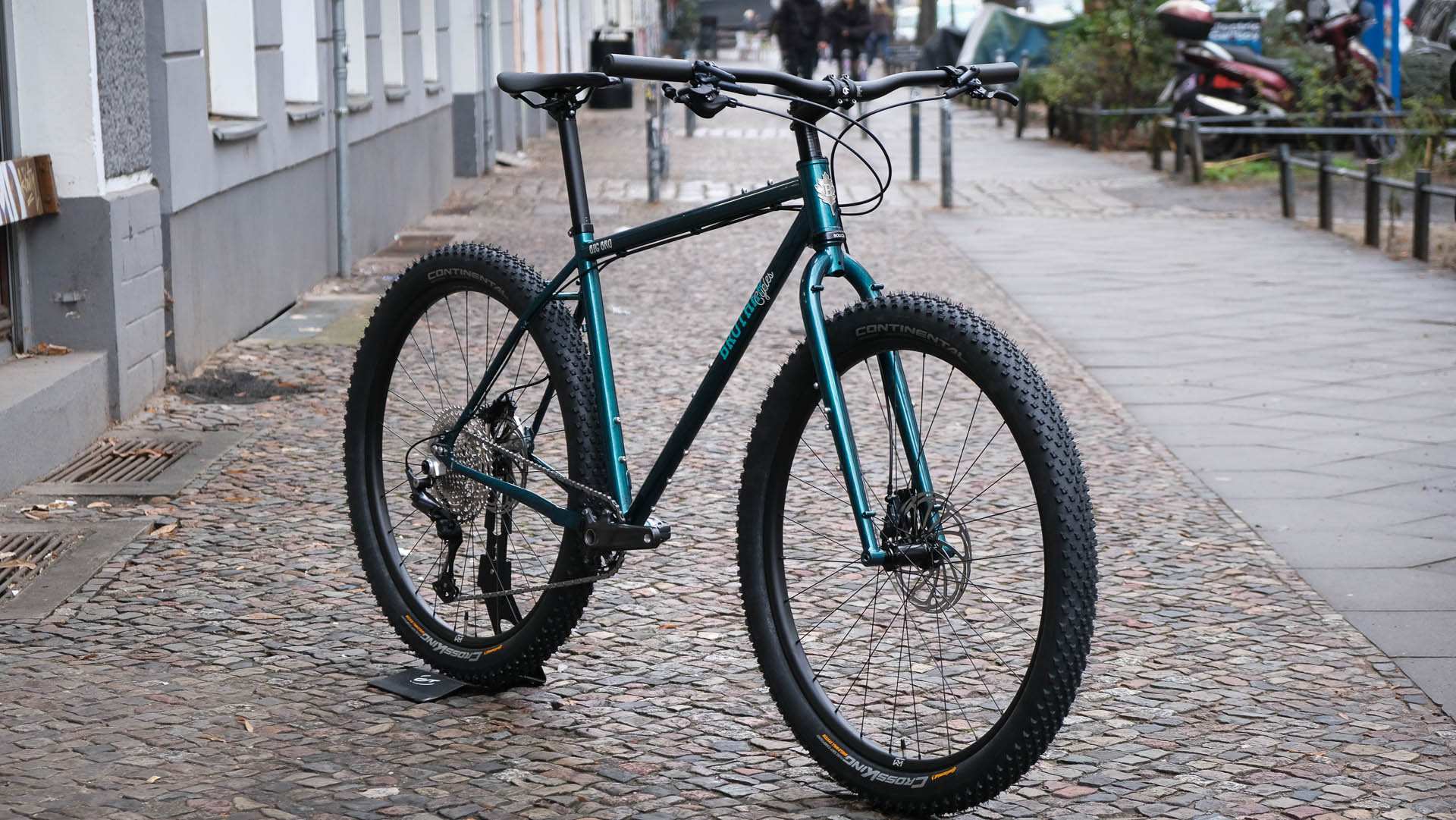 Leo´s Stooge Rambler is an iconic looking bike for sure. Just look at that toptube and fork crown! But its not only good looking with its shiny polished wheels (Industry Nine and SON hub laced to DT Swiss rims with wide Vittoria Mezcal tyres), robust Gevenalle X 11-speed Shimano MTB drivetrain, elegant Middleburn RS8 crankset and matching Velo Orange seatpost/stem combination … but it is actually a very capable and fast adventure bike with massive tyre clearance. The bike is stopped by the probably best mechanic disc brake on market right now: the Growtac! SON headlight and minimal B+M taillight attached to the beautiful Drust light holder make it night proof.